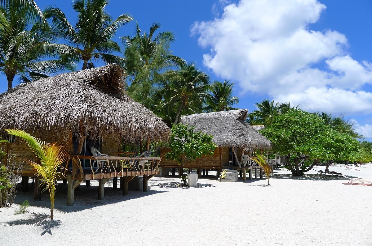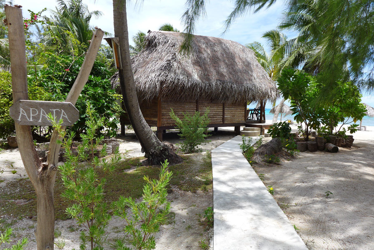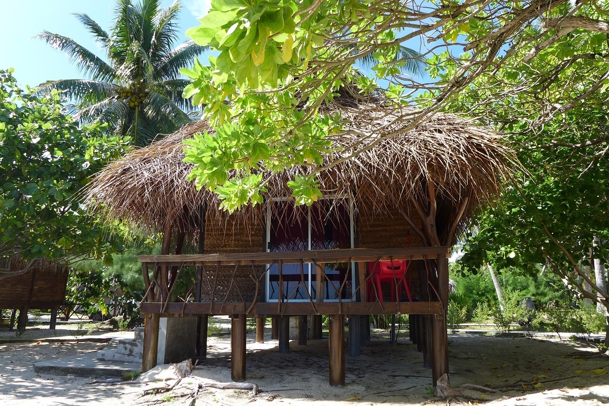 Situés sur une vaste plage de sable blanc face à un magnifique lagon turquoise, ses 11 bungalows polynésiens sont simples, construits et décorés à la main avec des matériaux locaux (bois de cocotier, bambou, coquillages, coraux et sable de l’ile…).