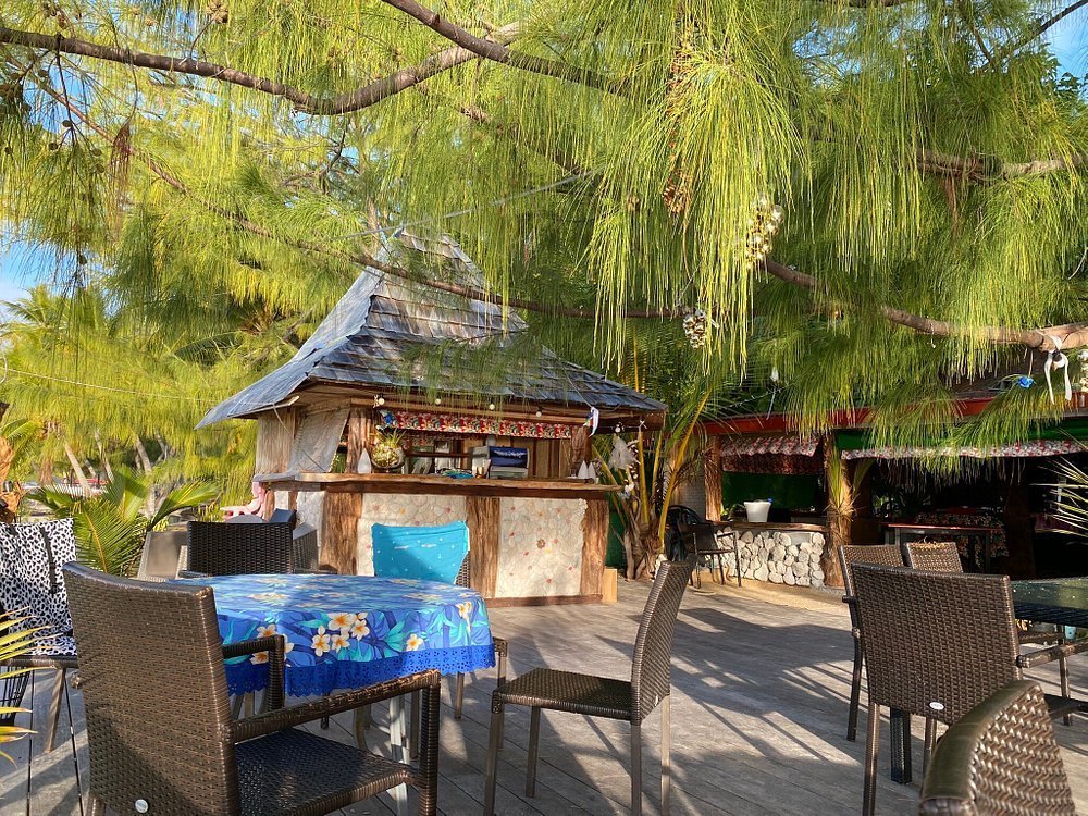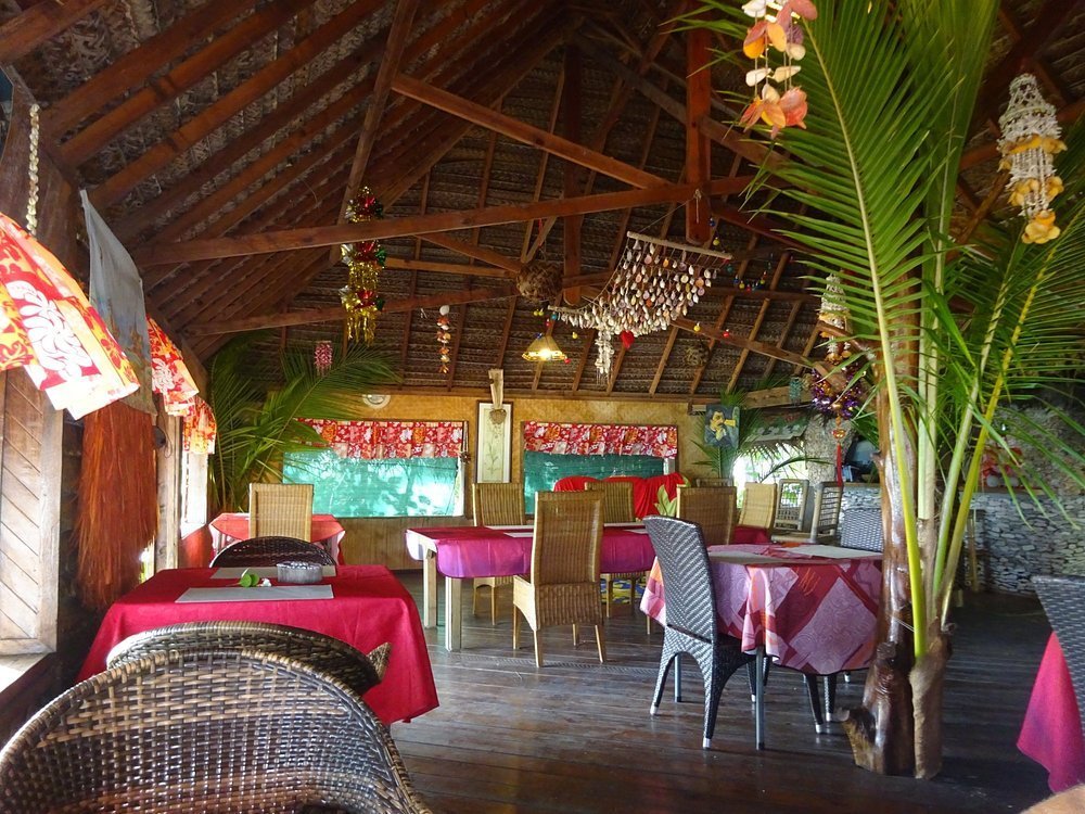 dans le fare pote (salle à manger polynésienne) typique et particulièrement agréable.