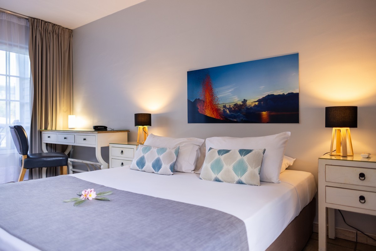 L'hôtel les Créoles dispose de 42 chambres et studios divisées en 4 catégories et répartis dans plusieurs bâtiments :
