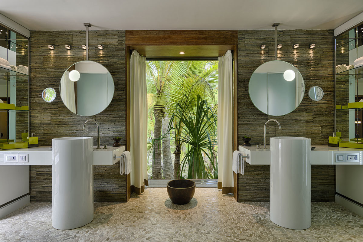 Ce refuge privé, inspiré par la vision originale de Marlon Brando de créer une propriété au développement durable, entouré de kilomètres de sable blanc, abrité des regards par un écran de végétation luxuriante, fait face aux eaux impassiblement bleues du lagon.