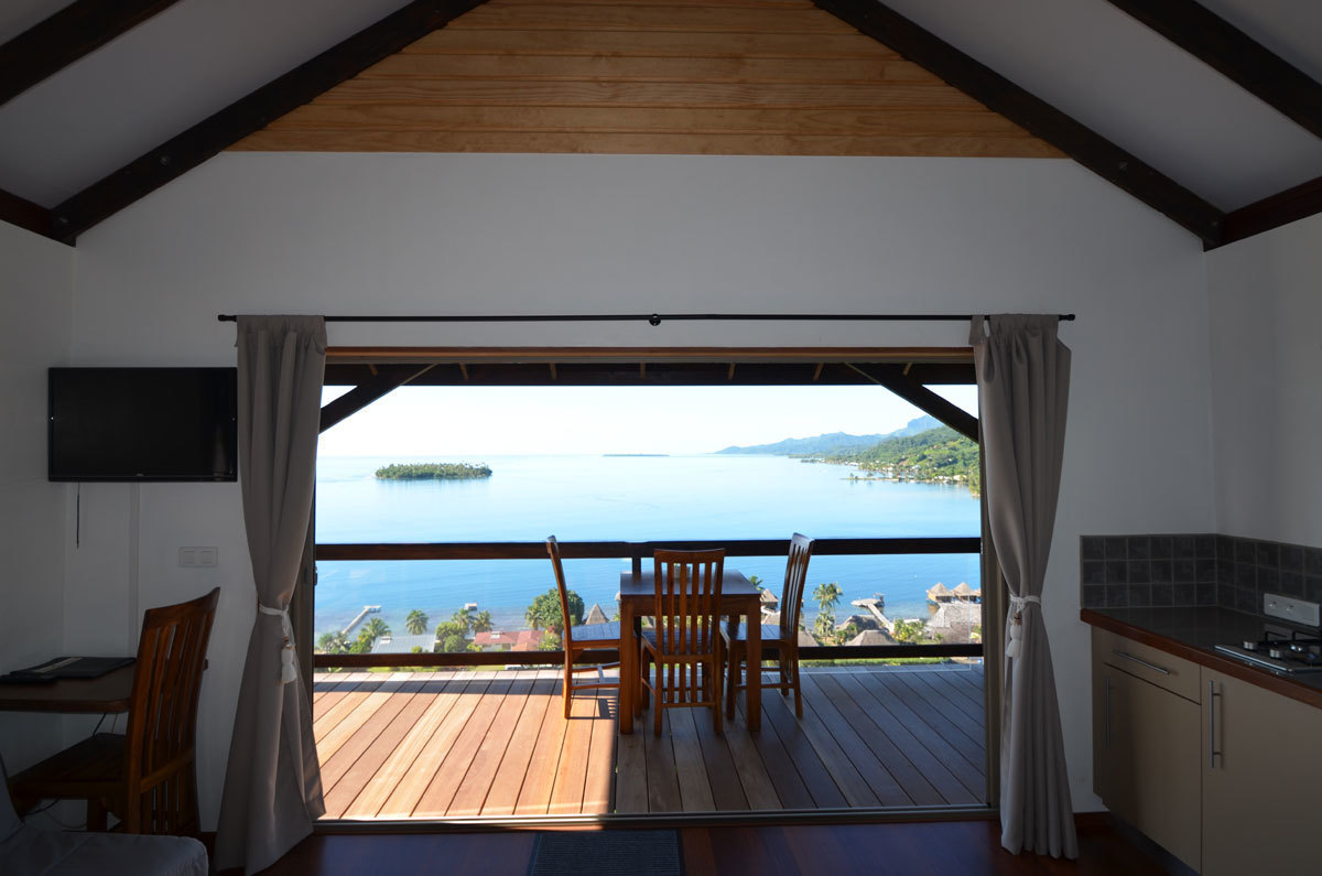 La Villa Tonoï vous propose 5 bungalows de 35m², vue lagon avec cuisine meublée et équipée, salle de bain privée et terrasse privative.