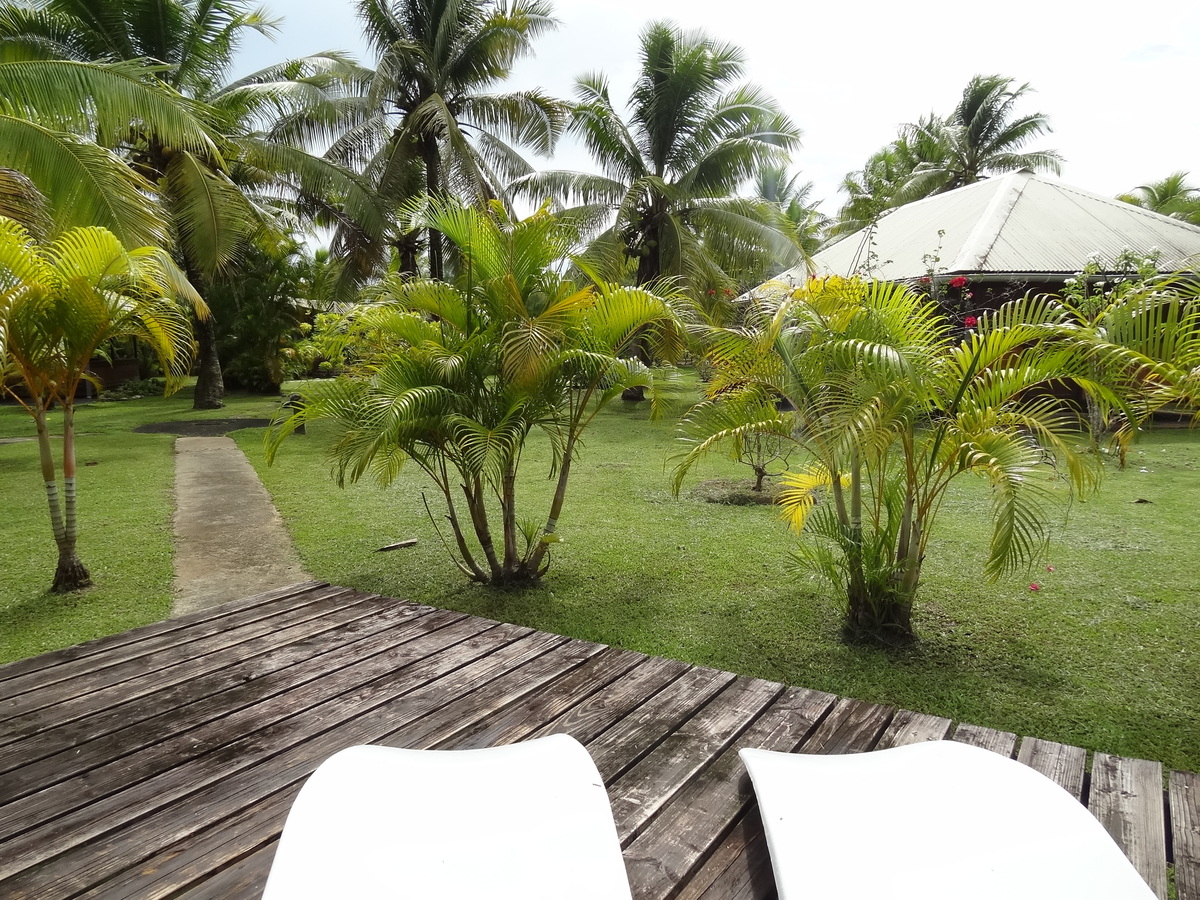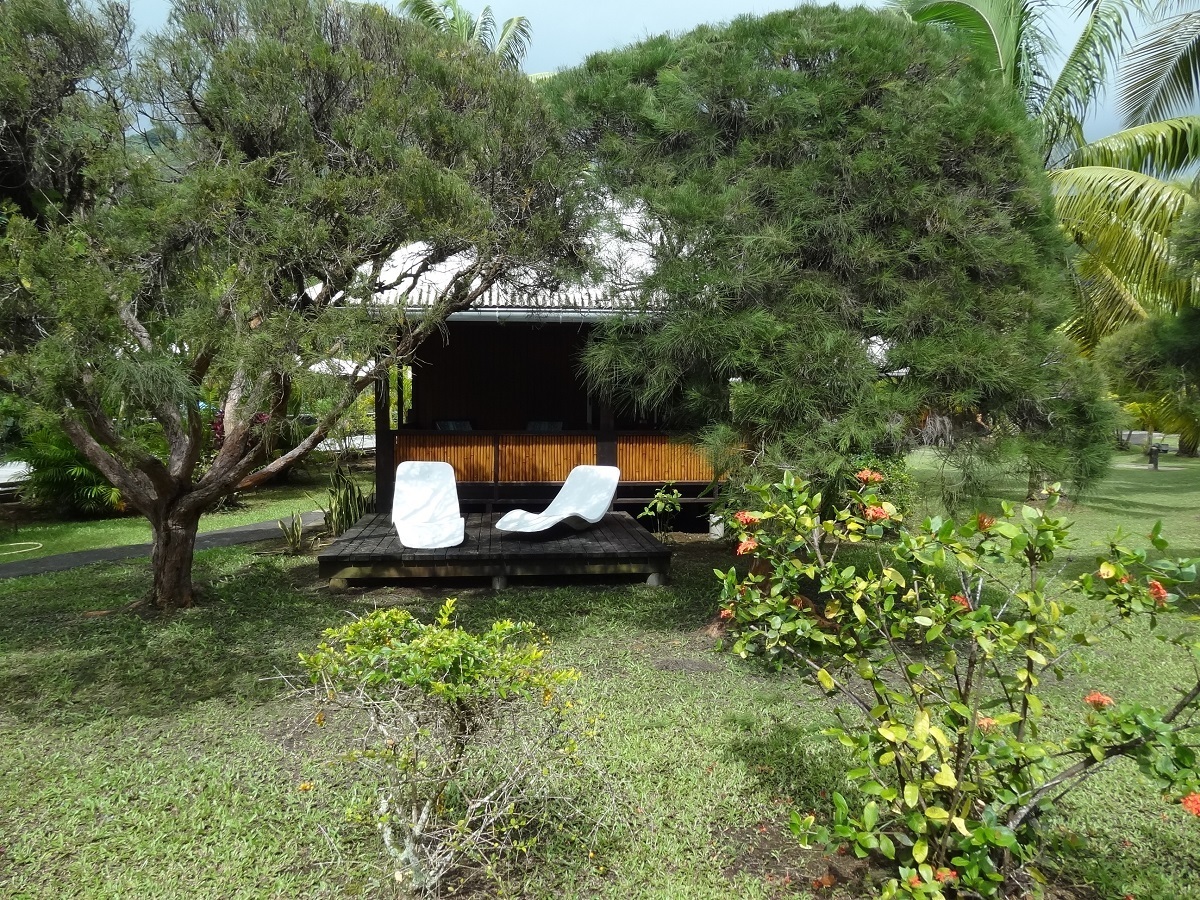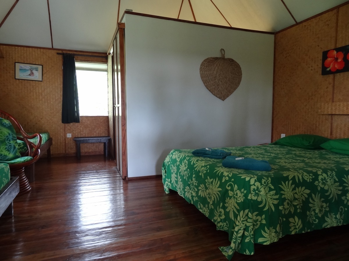 « Les bungalows de la pension Manava sont dispersés dans un beau jardin fleuri. La pension est située côté montagne dans la commune d'Avera à 6 kms du centre ville d'Uturua et de l'aéroport. »