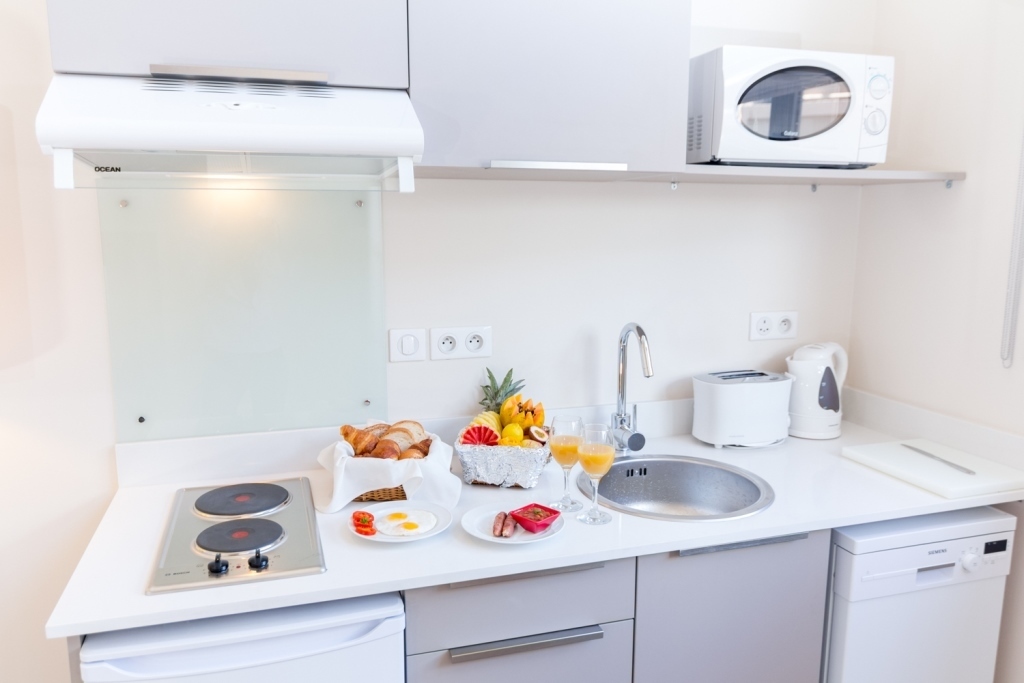 Ainsi, vous serez totalement libres de choisir la formule que vous préférez pour vos repas ! Les studios et appartements sont dotés d'une kitchenette parfaitement équipée. Vous pourrez donc cuisiner au gré de vos envies.