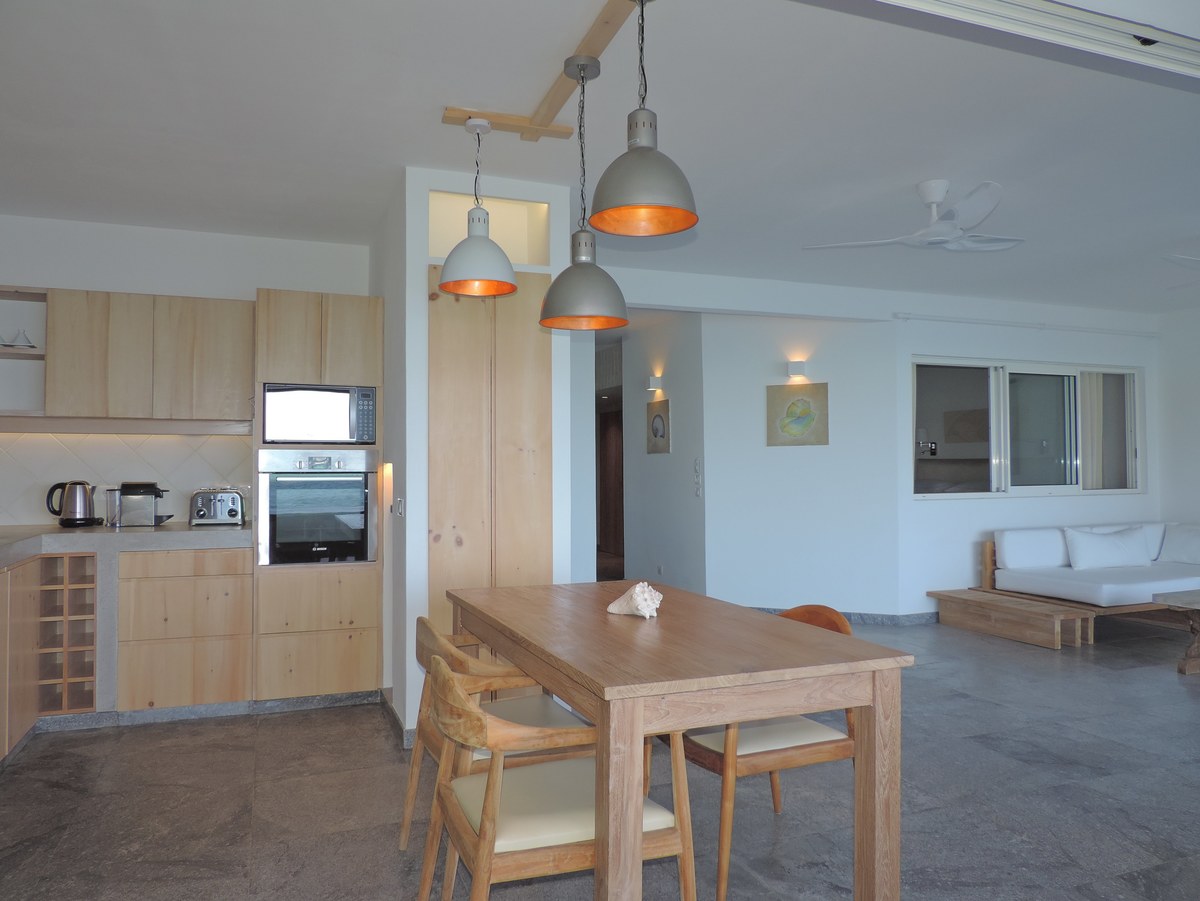 Chaque suite possède 1 lit king-size (2m), un salon ainsi qu'une cuisine très bien équipée. Toutes les chambres sont climatisées avec service en chambre sur demande, serviettes de plage fournies, ménage quotidien,TV satellite, DVD, radio-cassette-CD player, téléphone/fax, et coffre de sécurité.