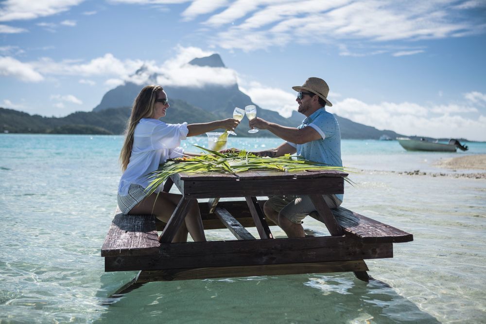 Petit-déjeuner les pieds dans l'eau à Taha'a.