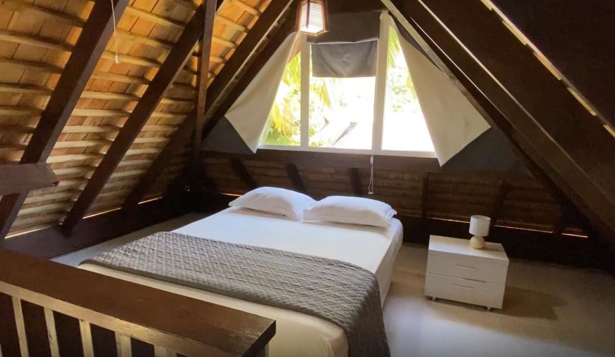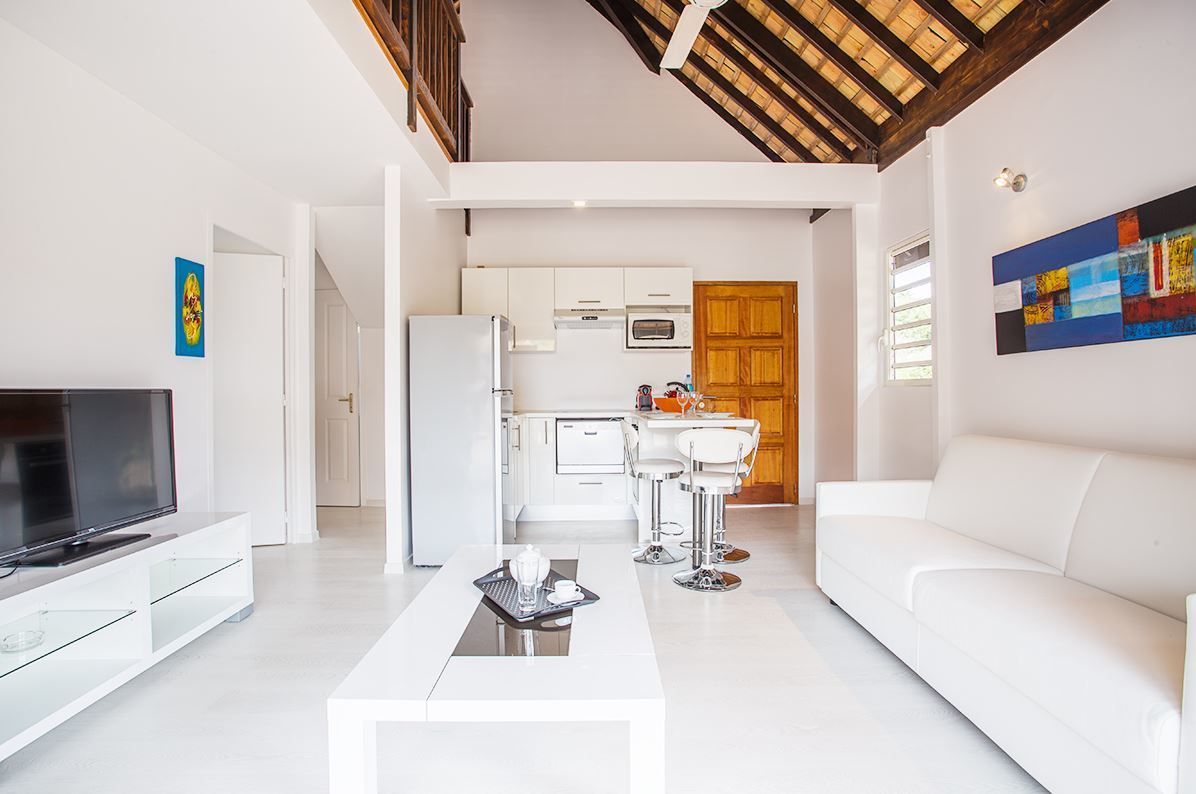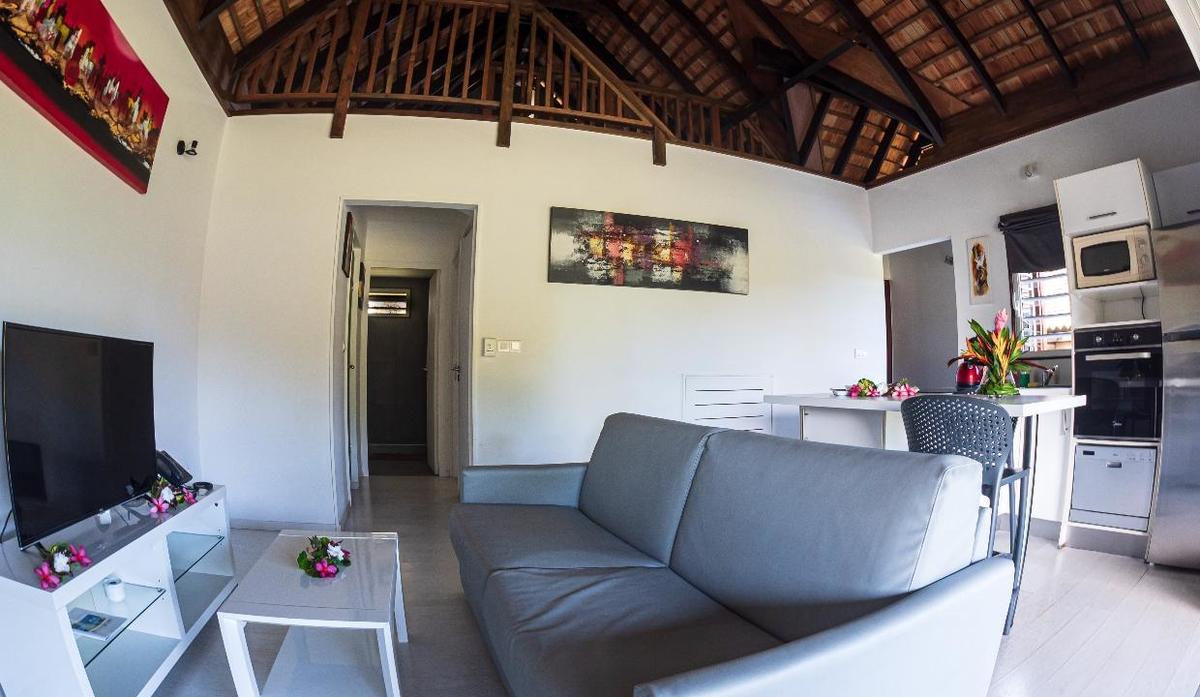 peut accueillir des couchages supplémentaire. Situés à 50 m du lagon au coeur du jardin tropical avec vue partielle sur le lagon.