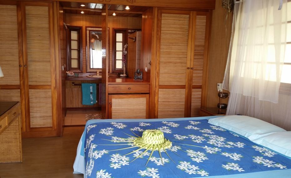 Vue lagon ou vue jardin, chaque unité possède sa salle de bain privée, une literie de qualité avec moustiquaire, ventilateur et bureau.