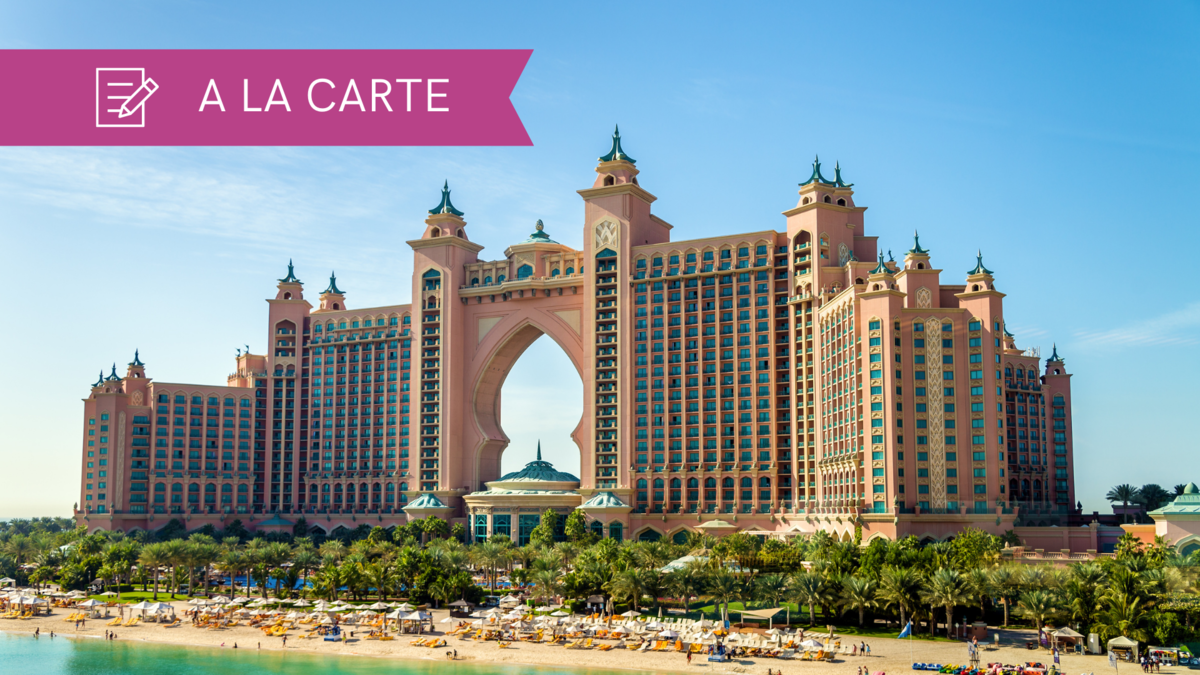 A l'extrémité de l'île artificielle de Palm Jumeirah, la Palme, un extraordinaire resort signé Sol Kerzner recrée l'univers de la mystérieuse cité de l'Atlantide.