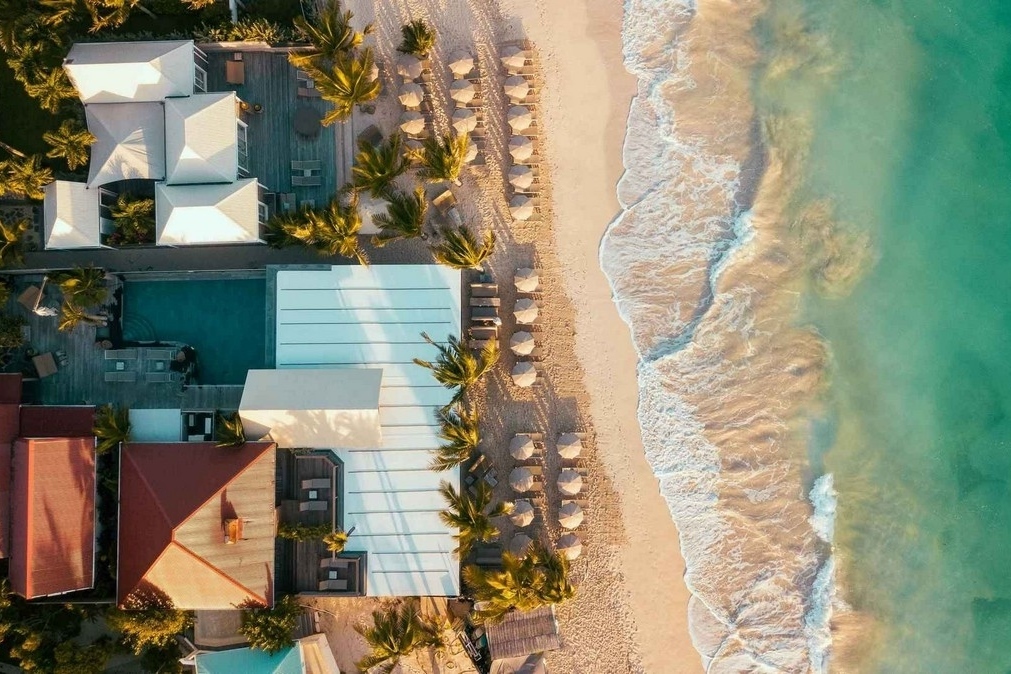- Vue sur la plage de sable blanc et sur la Baie de St Jean