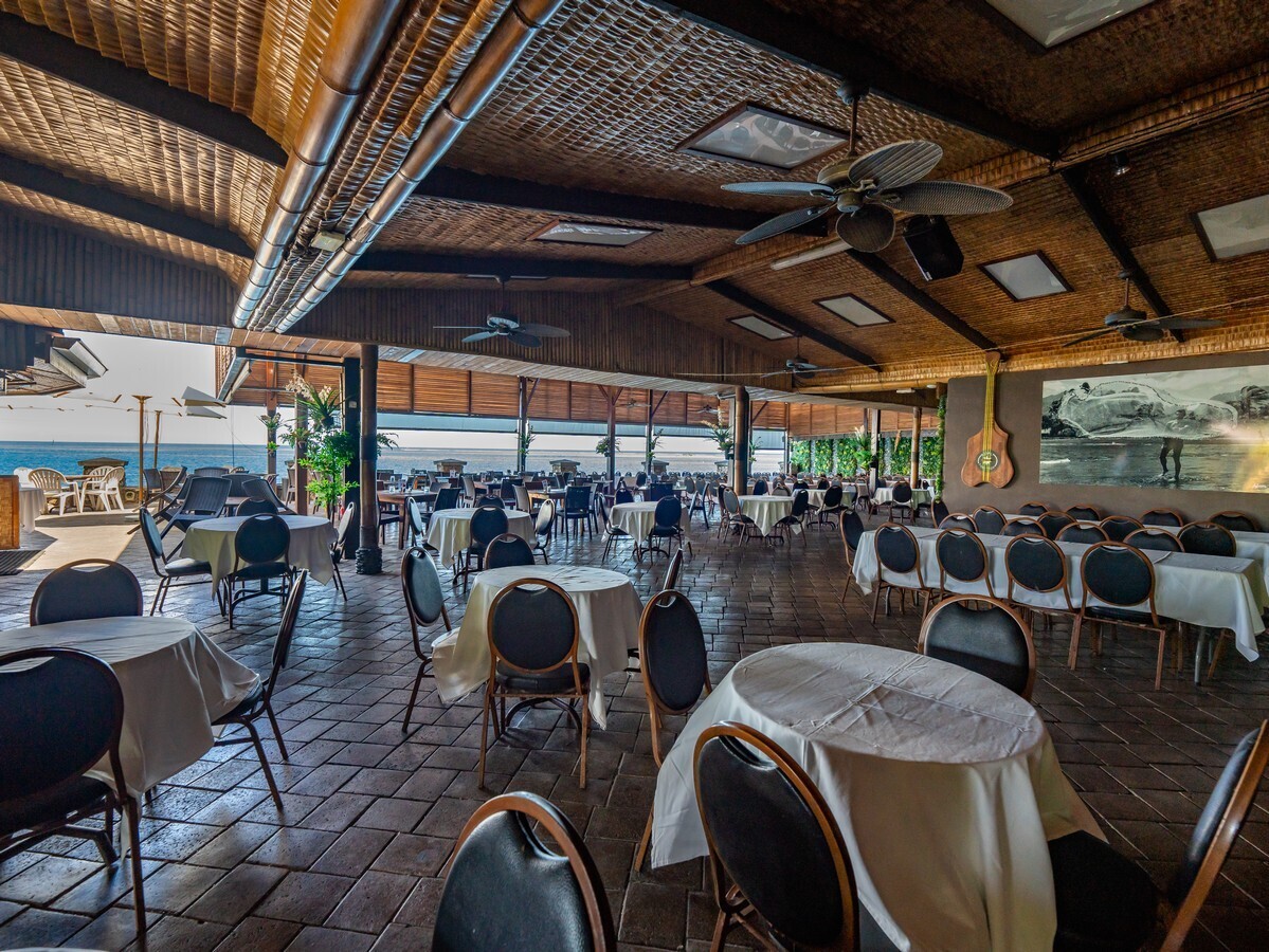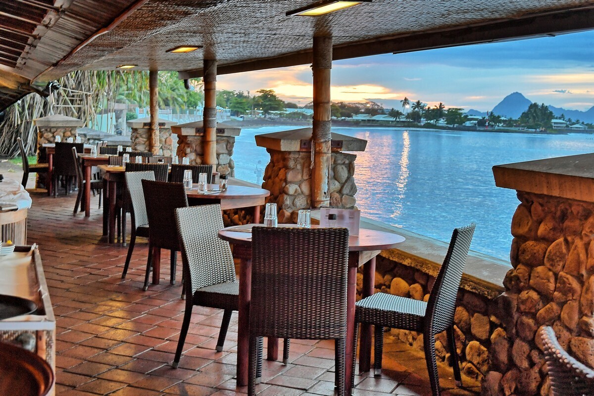 Le restaurant bordé par une plage de sable noir, est situé face à la mer et à l'île de Moorea. Sous son immense fare pote'e d'origine, (plafond en pandanus traditionnel), le restaurant du Royal Tahitien sert une cuisine polynésienne et internationale généreuse.