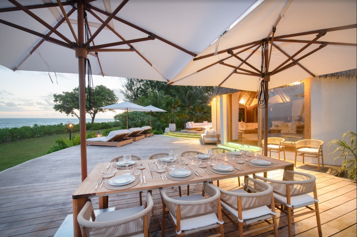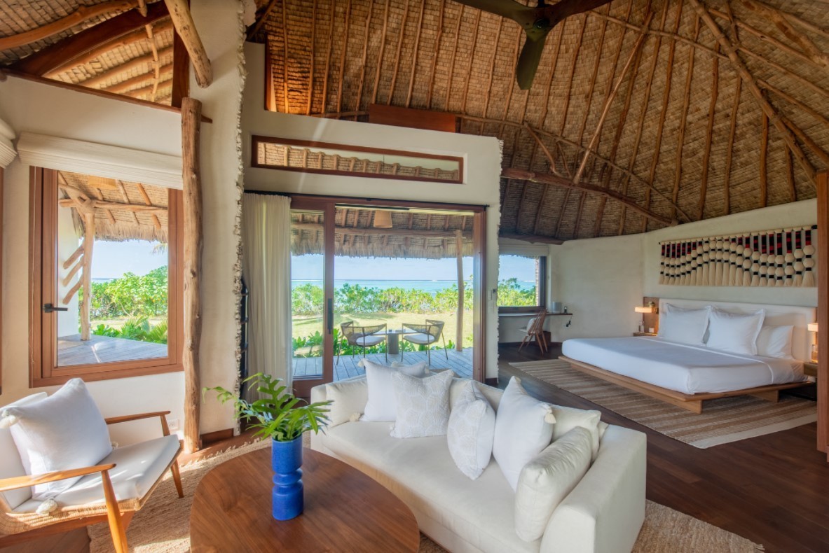 L'île dispose de trois villas sur la plage pouvant héberger chacune deux personnes, conçues par le designer local Alain Fleurot.