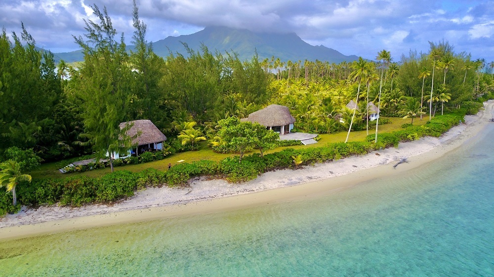 « Nao Nao est située sur un grand motu au sud du lagon de Raiatea. Une grande plage de sable blanc borde un magnifique lagon. Cette île privée abrite 3 villas... »