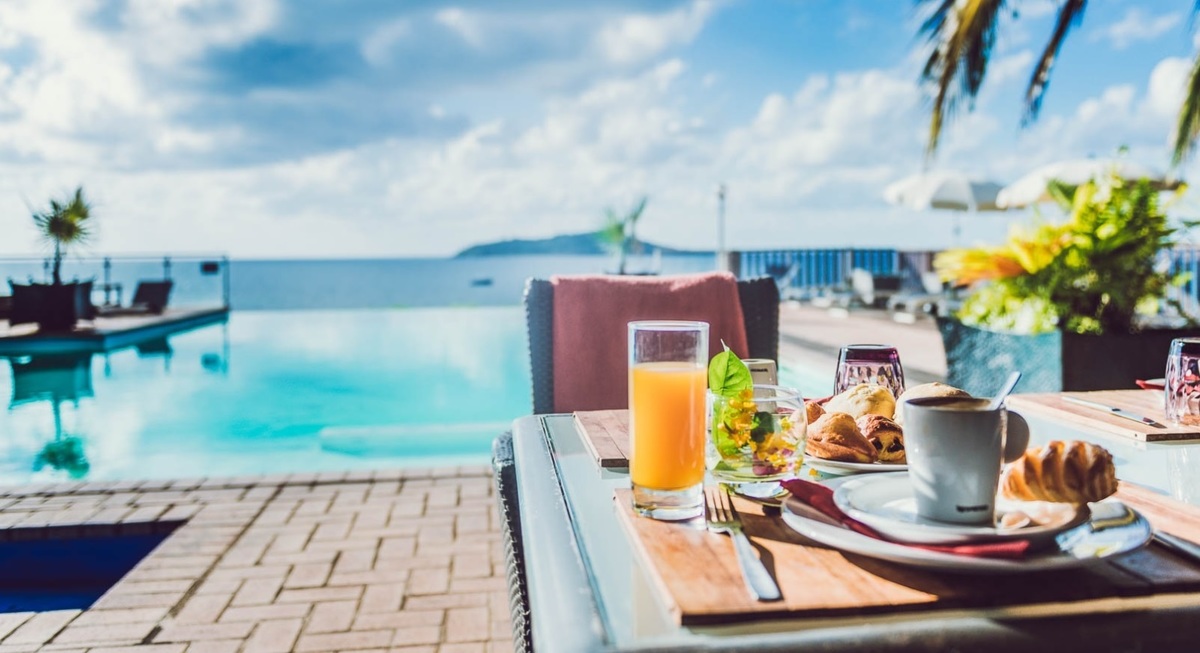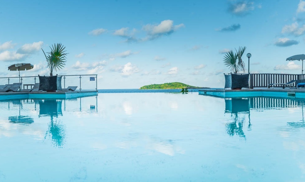 Notre avis : ... " Profitez du votre petit-déjeuner servi au bord de la piscine à débordement avec une vue imprenable sur l'océan indien et détendez-vous dans le bain à remous de l'hôtel après une journée pleine de découverte".