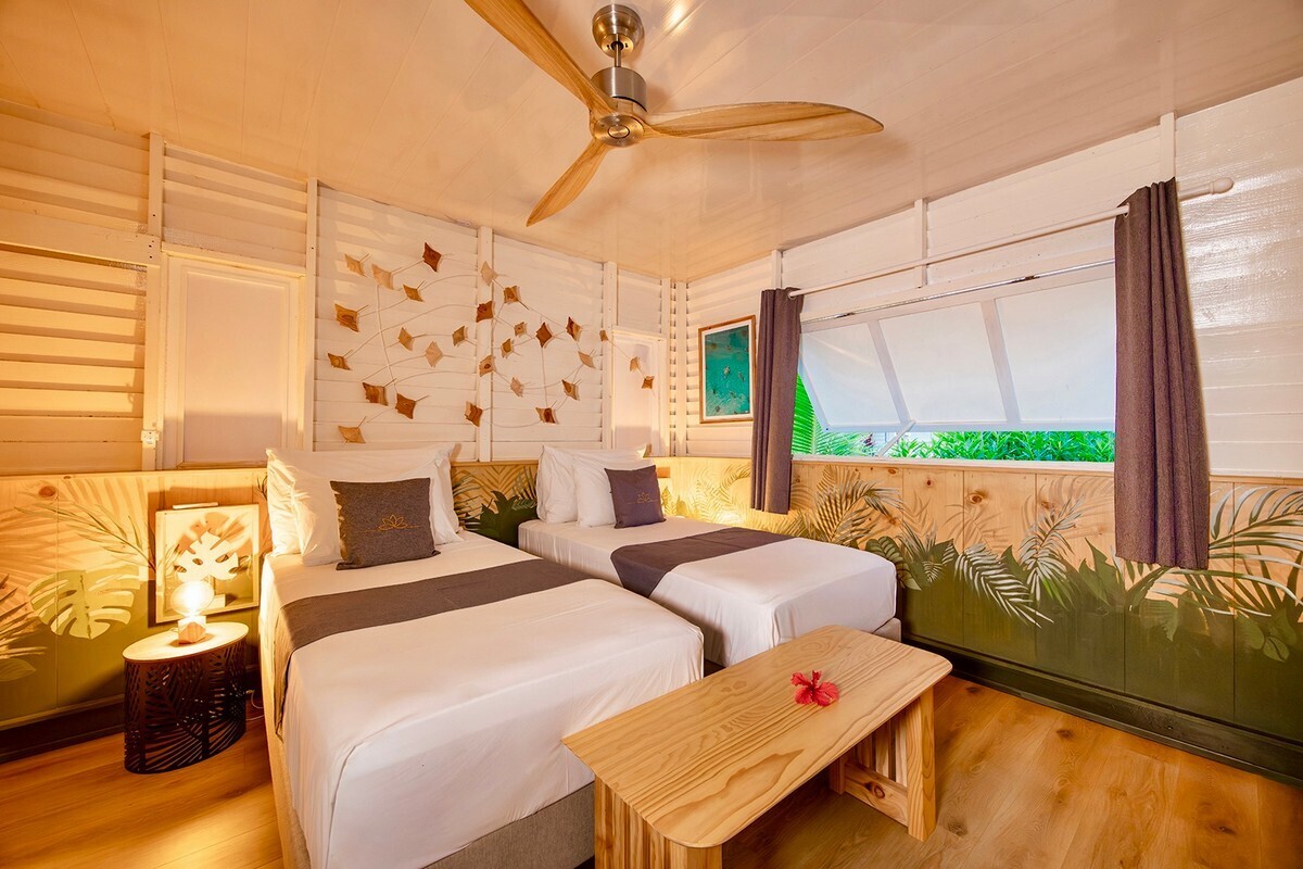 Les 10 bungalows d’architecture tropicale, sont proposés en 3 catégories : plage et jardin et famille