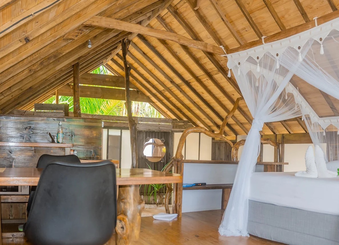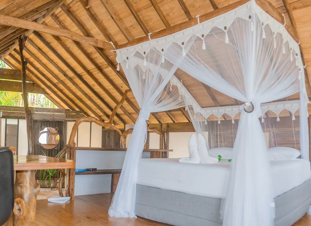 Chaque chambres disposent d'une kitchenette, un ventilateur, moustiquaire, salle de bain et WC privée, femme de ménage quotidienne. Tous sont dotés d'eau chaude, d'un petit frigo, d'un coffre sécurisé, d'un ventilateur et d'un large couchage sous moustiquaire.
