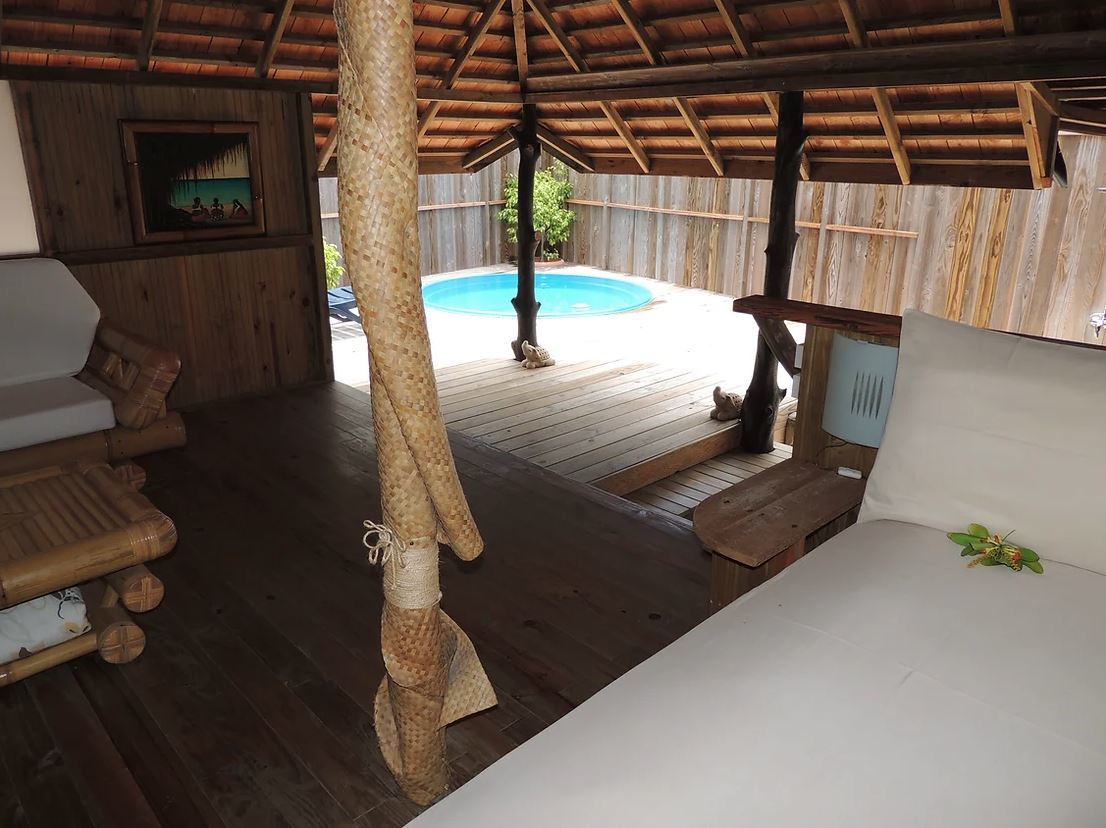 « Situé en bordure du lagon, proche du village et de ses principales commodités, l'établissement comprend 4 bungalows de style Polynésien. »