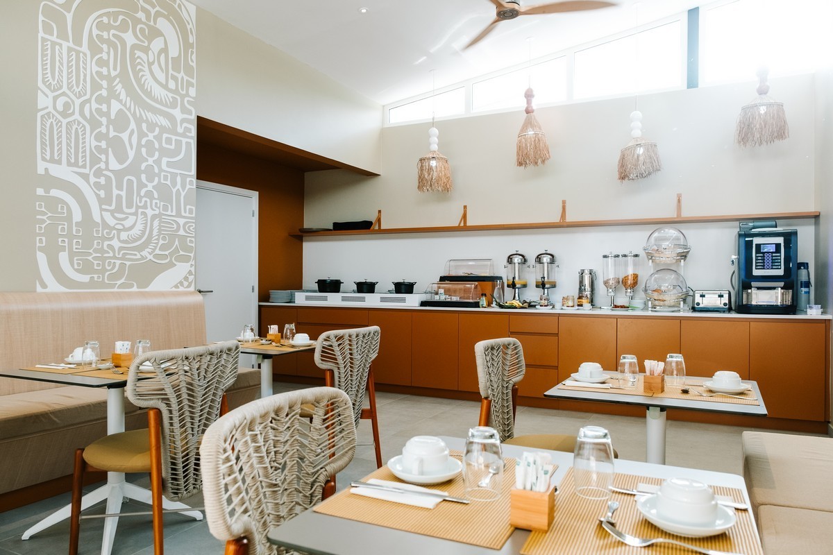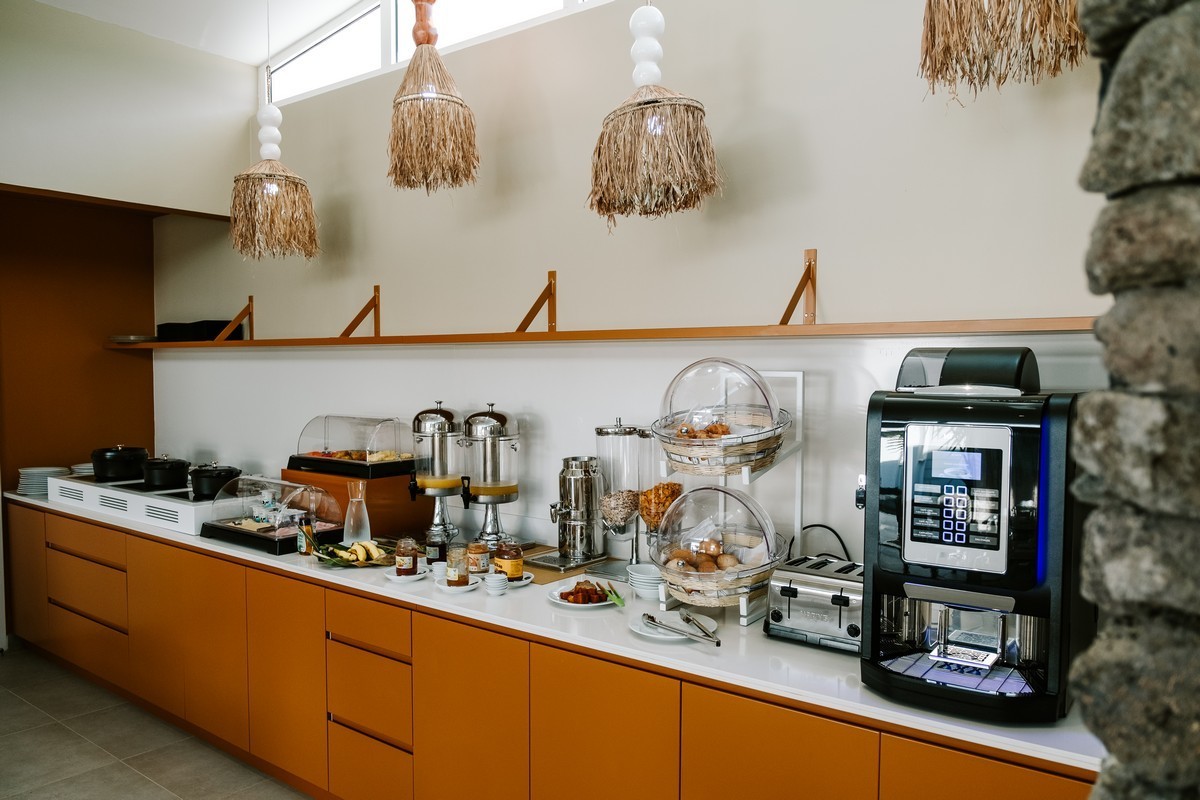 - Petit déjeuner tropical sous forme de buffet (café, thé, chocolat chaud, pains, viennoiseries, confitures, pâte à tartiner, fruits tropicaux, plateaux froids : charcuteries, fromages et 3 plats chauds)