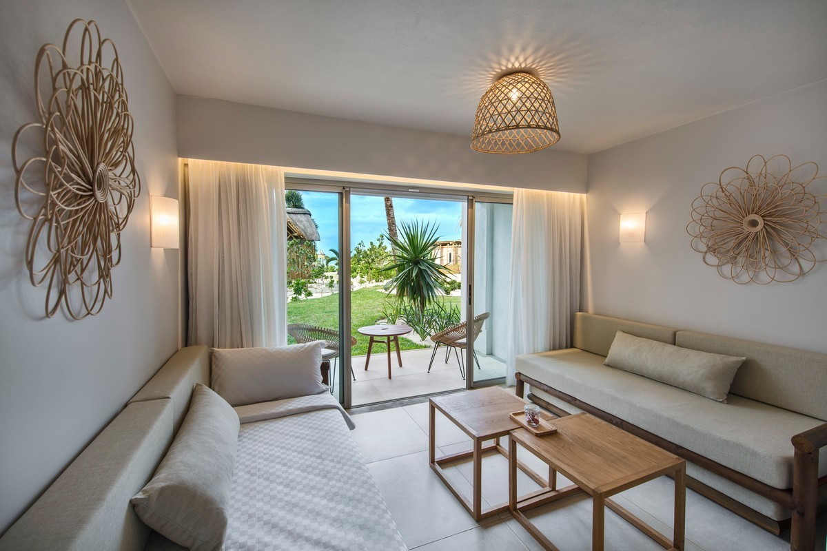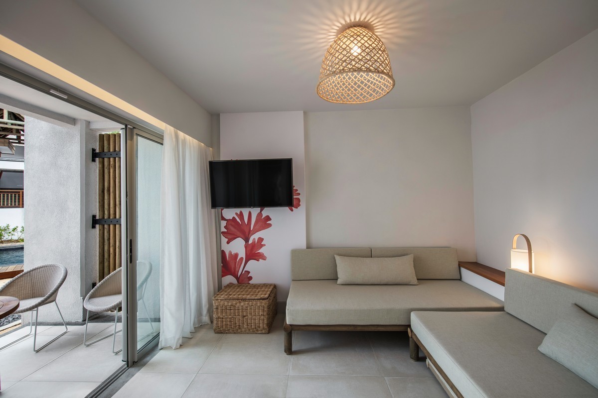 Sur la plage de l'île, face à l'île aux Aigrettes. Déjeuner à base de spécialités mauriciennes du jour, salades, hamburgers, pizzas et expérience gastronomique autour des fruits de mer pendant le dîner. Avec participation pour les personnes ayant réservés en formule demi-pension ou formule "All Inclusive Classique"