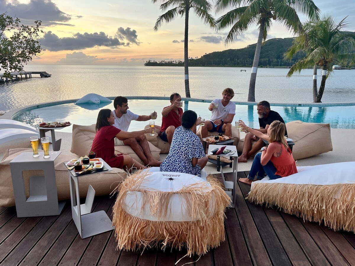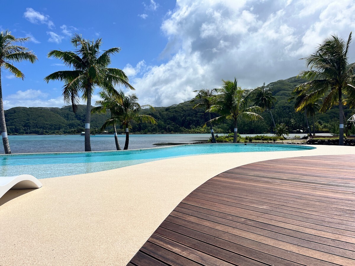 « Profitez d'une expérience unique lors de votre séjour, entre la mer et la montagne, dans un style contemporain et polynésien au sud ouest de l'île de Raiatea... »