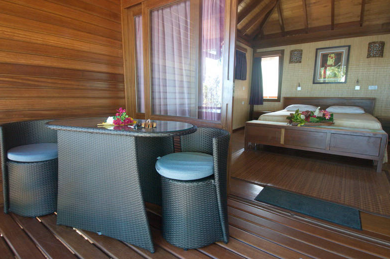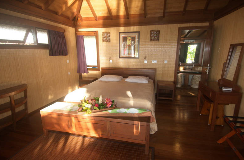 Les bungalows sont équipés d'une literie grand confort, d'une climatisation, d'un écran plat, d'un brasseur d'air, d'un réfrigérateur et d'un coffre fort. Les salles de bain sont en bois et pierre