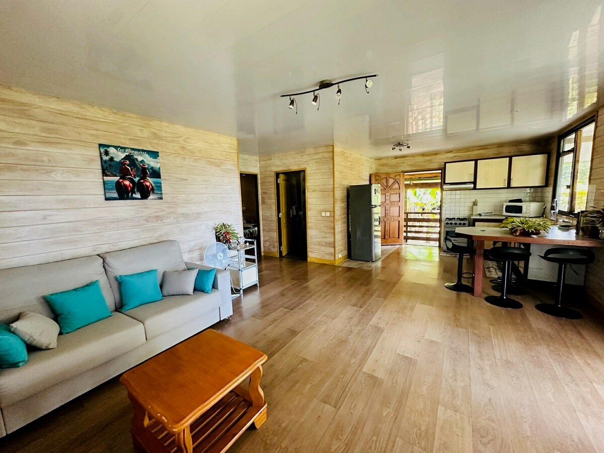 Idéalement située dans la vallée de Taaoa, à seulement 30 minutes en voiture de l'aéroport, vivez une expérience hors du temps avec la famille Kohei, dans un véritable havre de paix entouré d'arbres fruitiers et de fleurs.