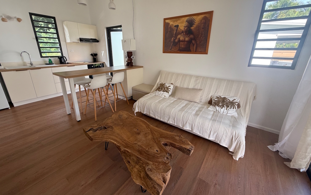 Pensé pour les voyageurs indépendants, le lodge est idéal pour les couples ou les familles souhaitant découvrir Moorea à leur rythme. Chaque bungalow dispose d’une terrasse et d’un jardin privé, d’une chambre, d’un salon avec canapé-lit, d’une cuisine entièrement équipée ainsi que d’une salle de bain. Les hébergements peuvent accueillir jusqu’à quatre adultes et offrent tout le nécessaire pour un séjour confortable et autonome.